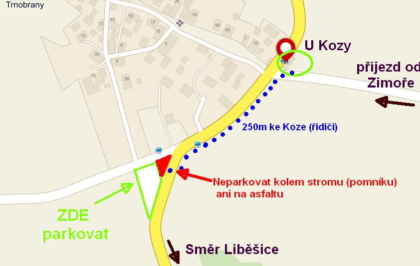 Prosíme řidiče aut, aby vysadili svou posádku u klubu a zaparkovali auta na velké štěrkovo-hlinité ploše o 250m dále směrem na Liběšice. Plocha je hned u cesty z Trnobran na Liběšice a je dostatečně velká. Nenechávejte prosím auta kolem pomníku ani na asfaltu, nemáme to dovoleno a místním to vadí.